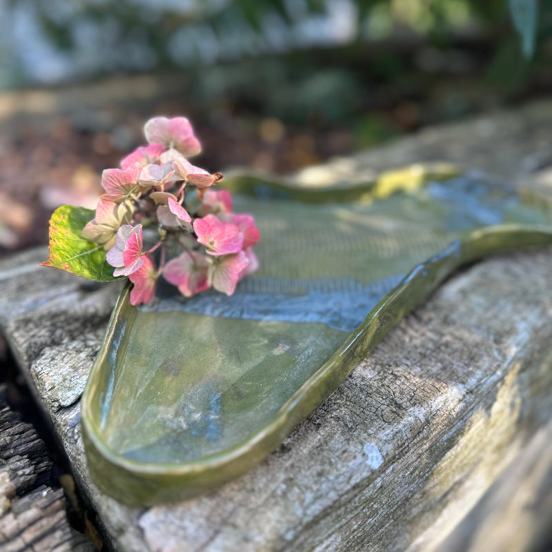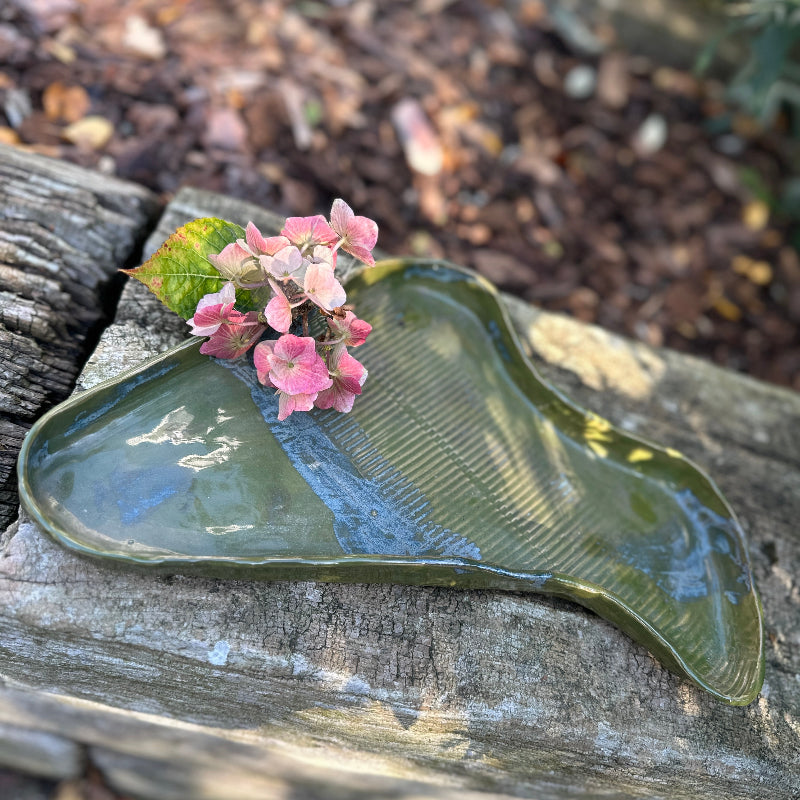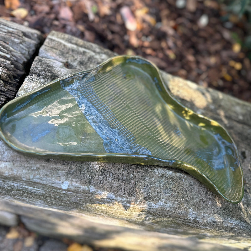 Köstliches grünes Gericht mit gräulichen Streifen.