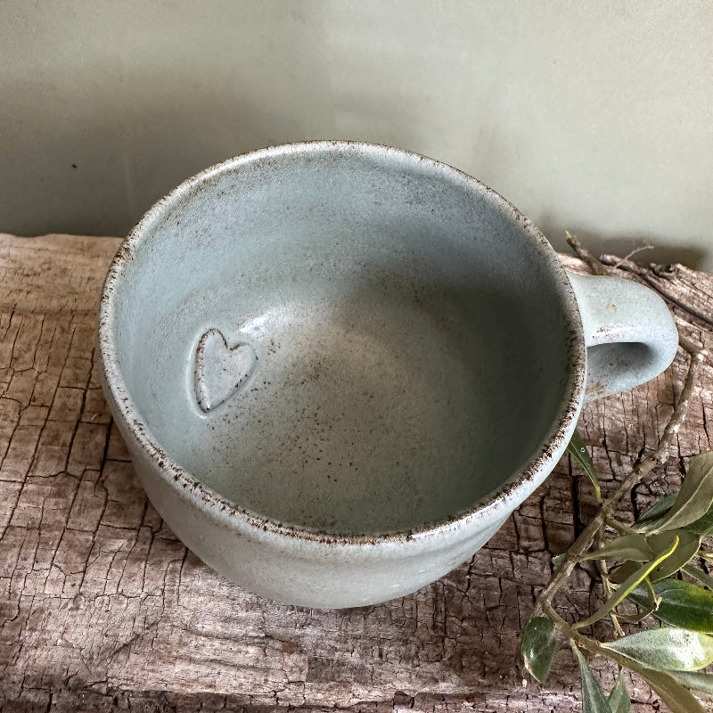 Smuk lys blå kop med hank.