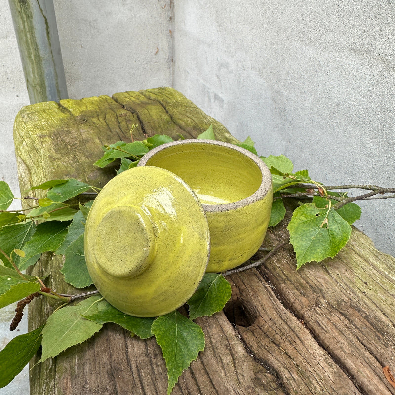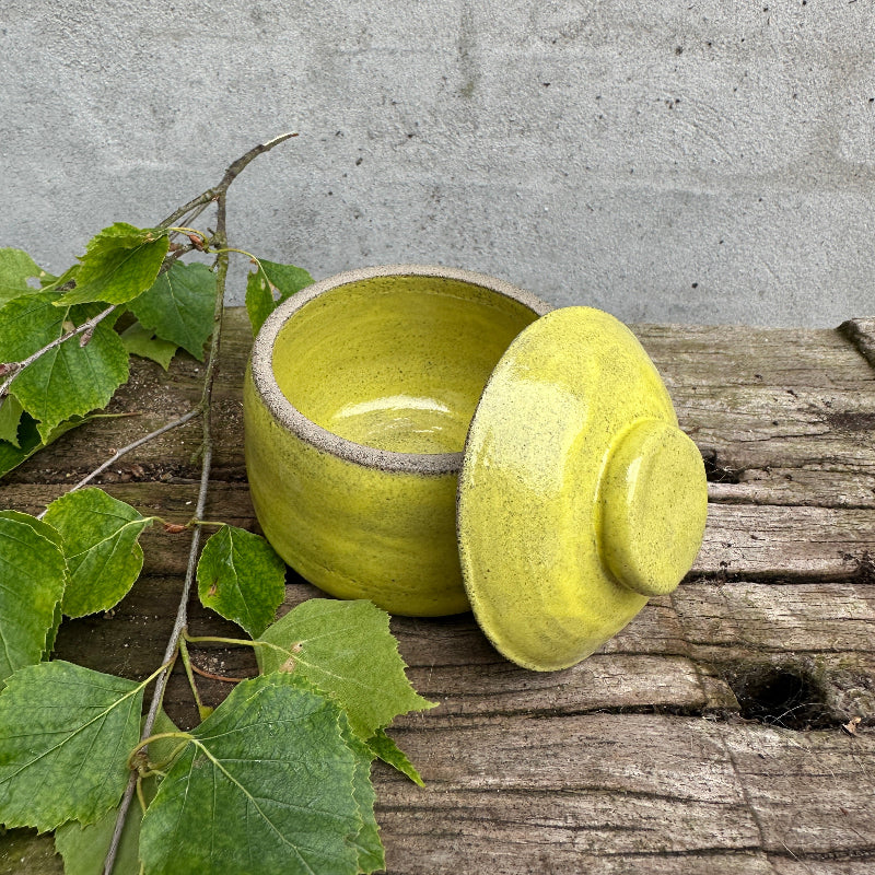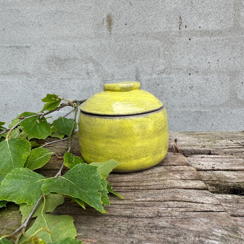 Flot blank gul krukke med låg.