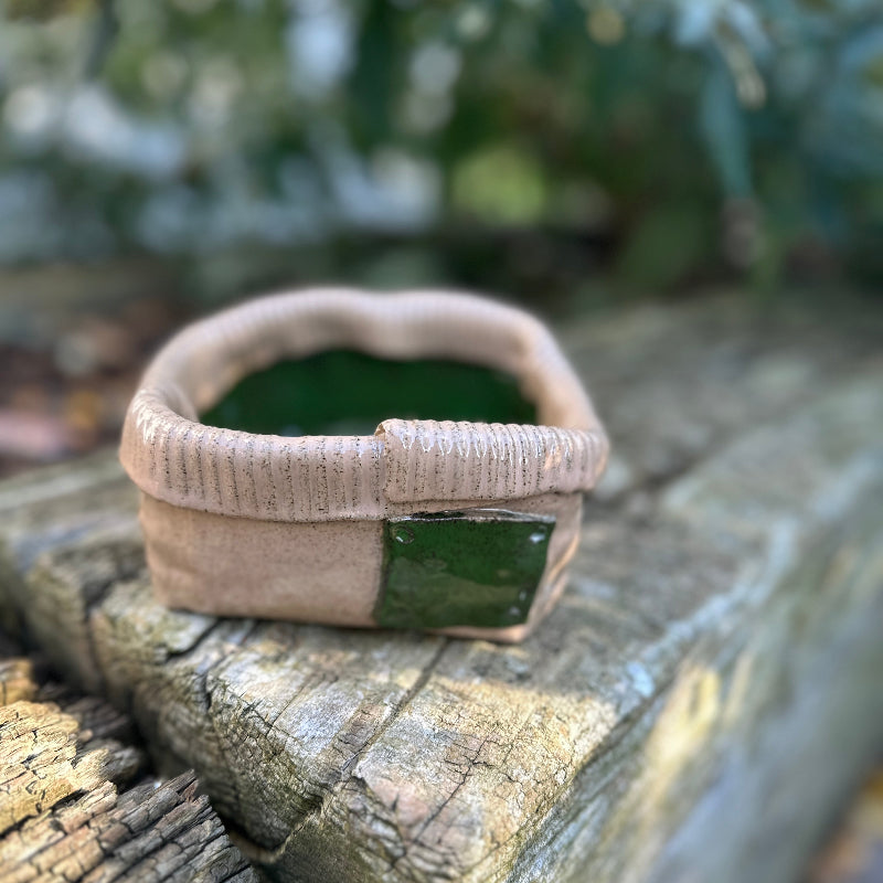 Grüner und lattefarbener Salzstreuer.