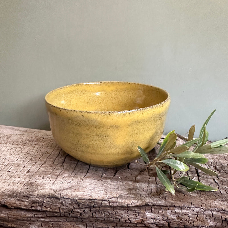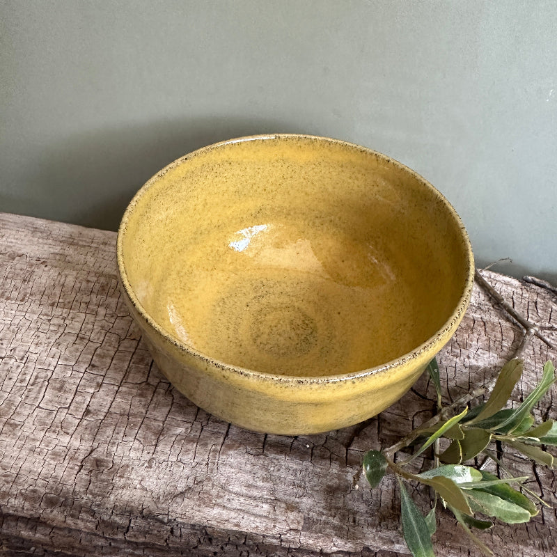 Lækker morgen mad skål i en varm gul.