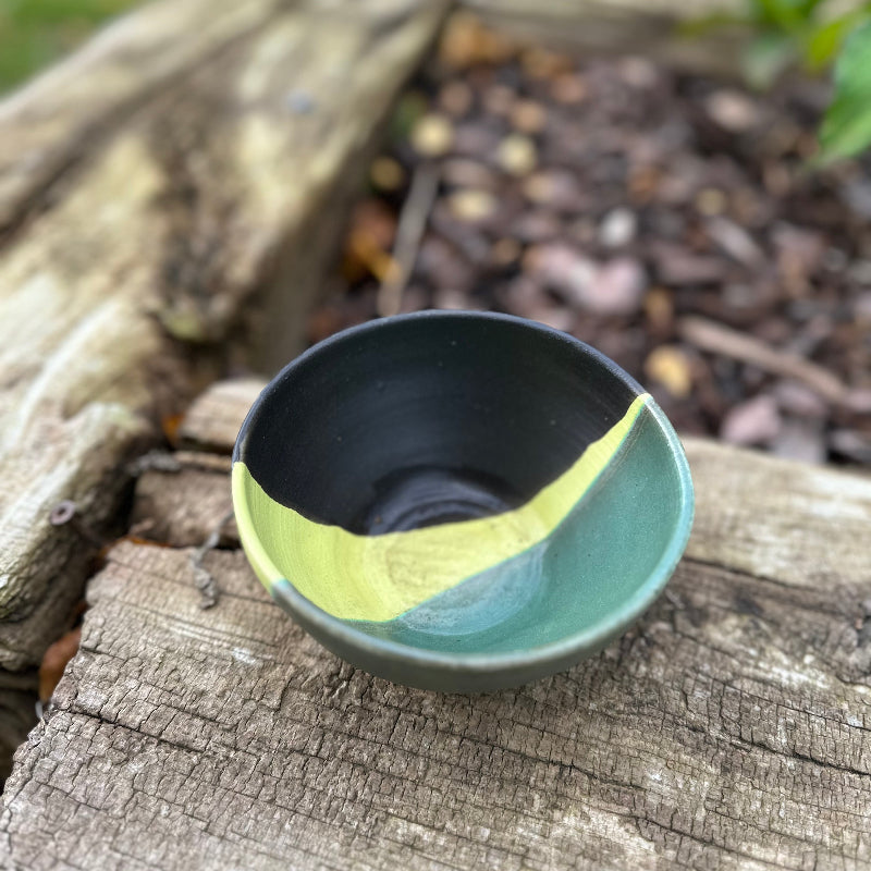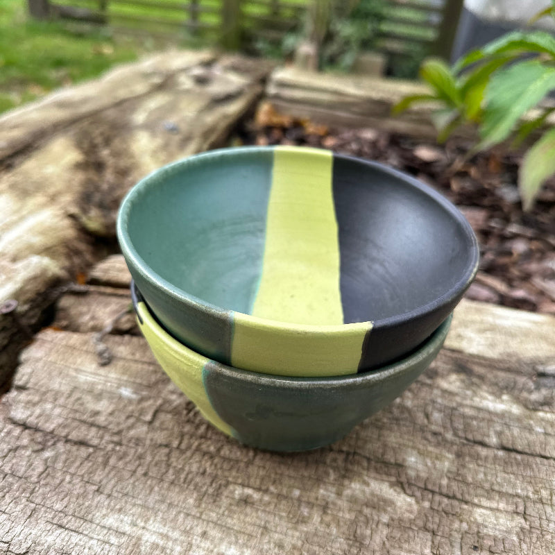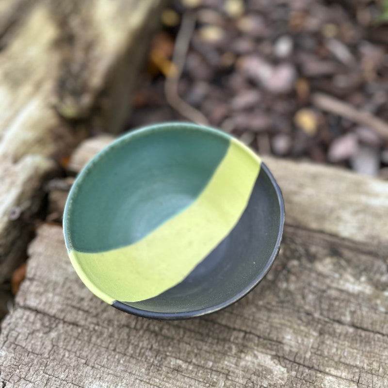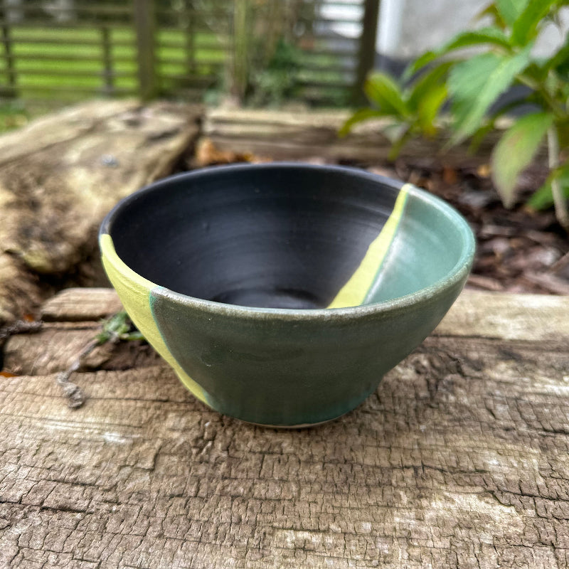 Frühstücksschüssel in Grün, Limettengrün und Mattschwarz.