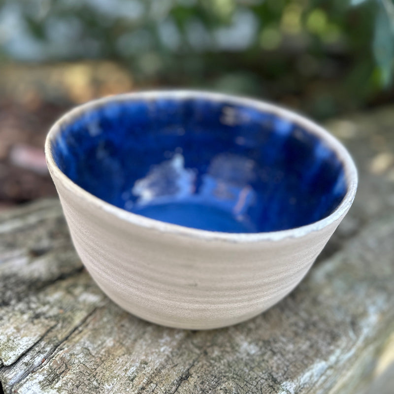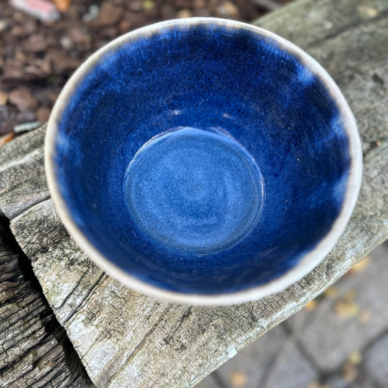 Wunderschöne tiefblaue und weiße Salatschüssel.
