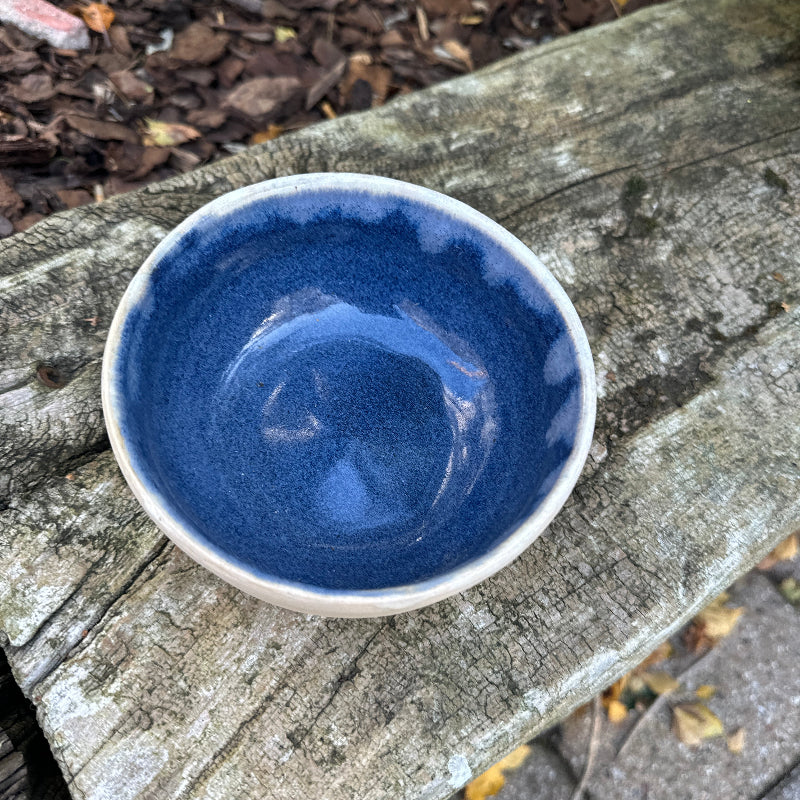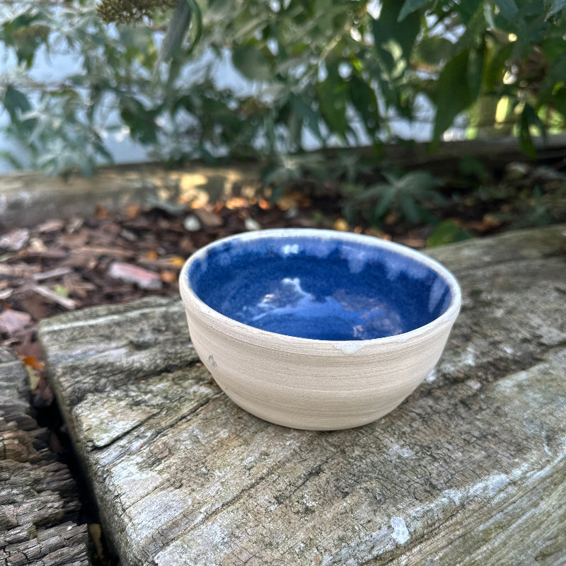 Wunderschöne tiefblaue und weiße Frühstücksschüssel.