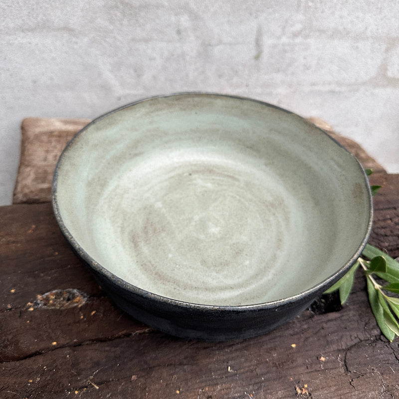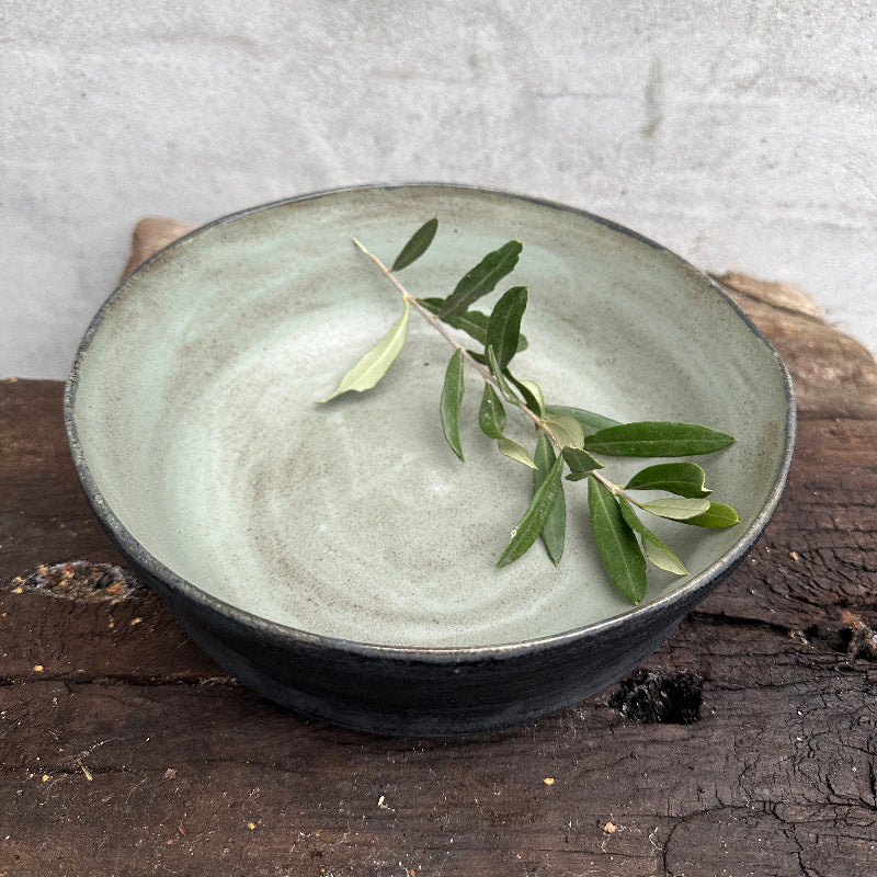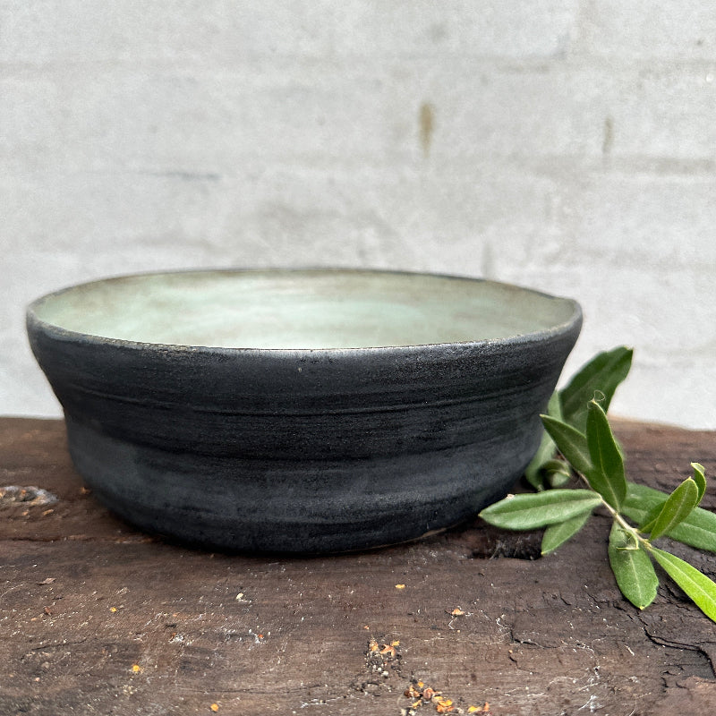 Köstliche Salatschüssel in mattschwarz und hellblau.