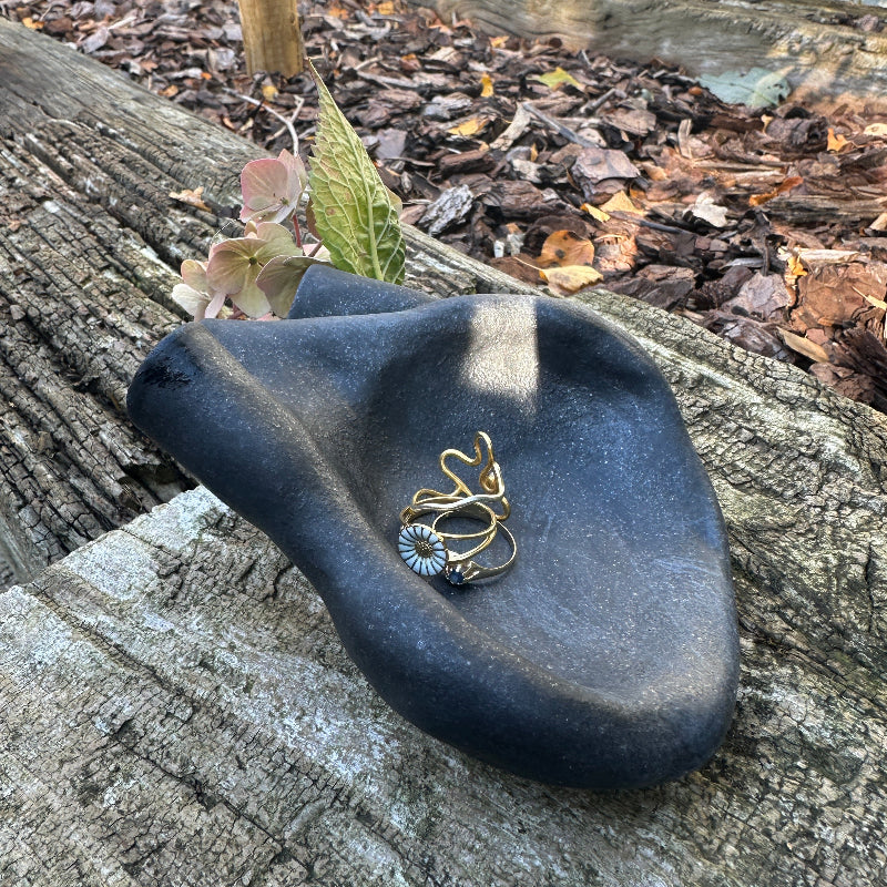 Mattschwarze, kleine, schöne Schale für Schmuck.