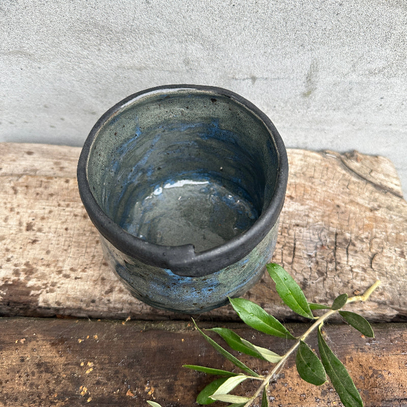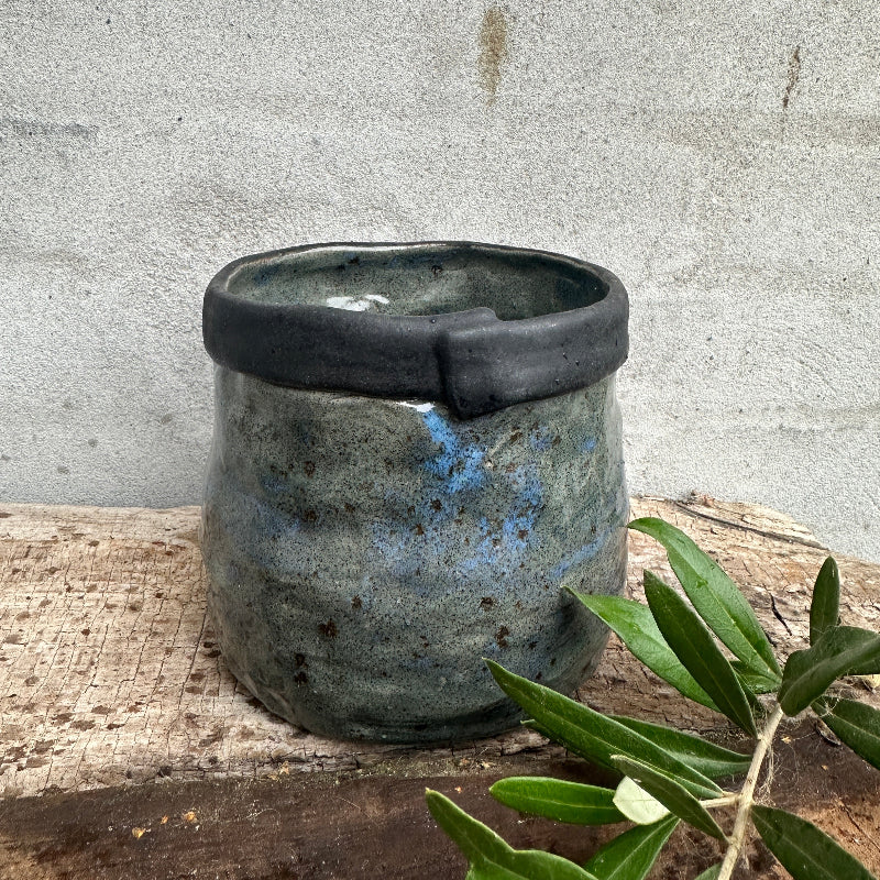 Schöne, große, blaumelierte Vase mit mattschwarzem Rand.