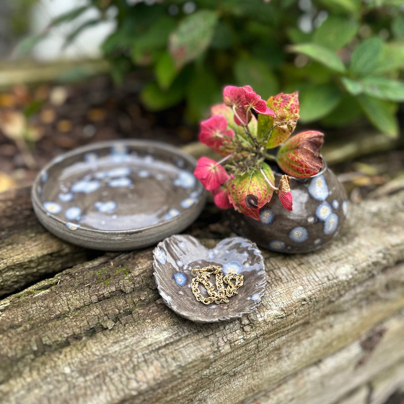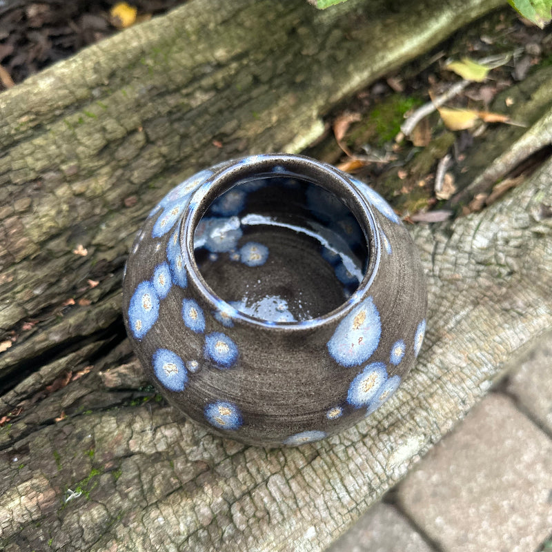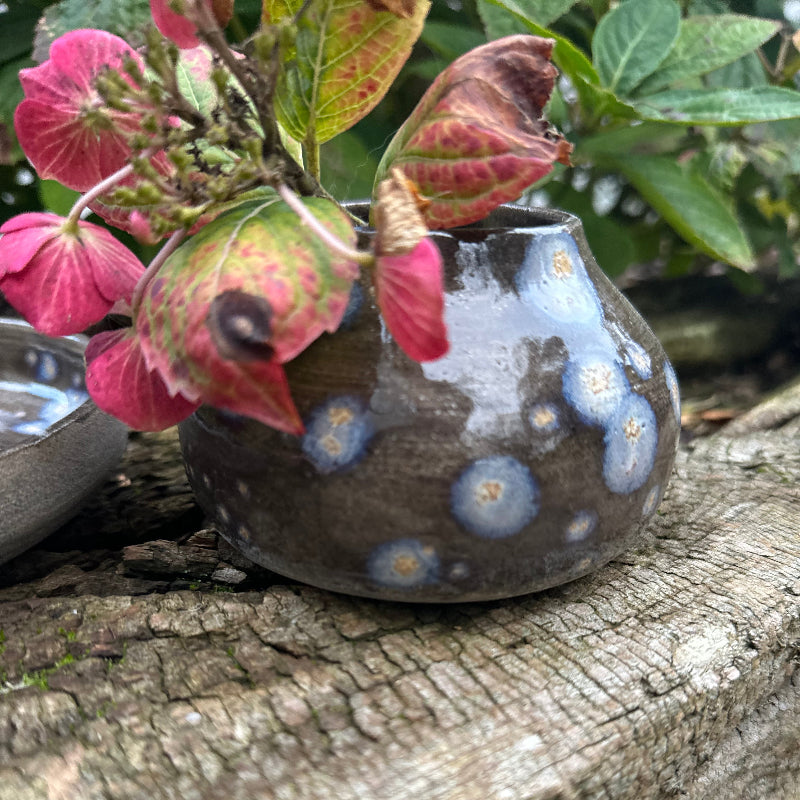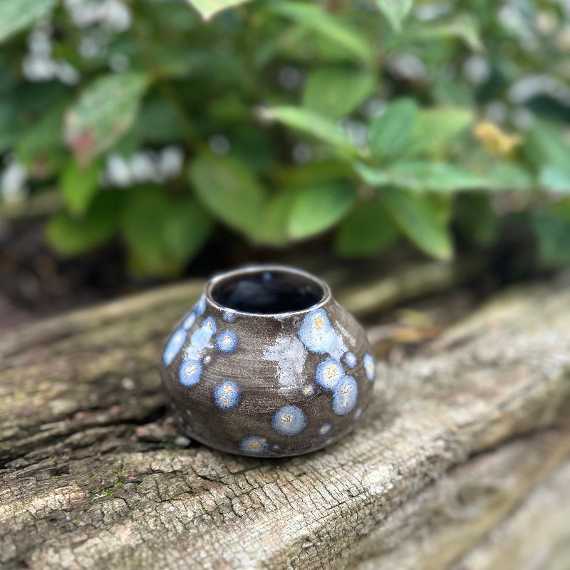 Süße, kleine, mollige Vase mit zauberhafter Glasur.